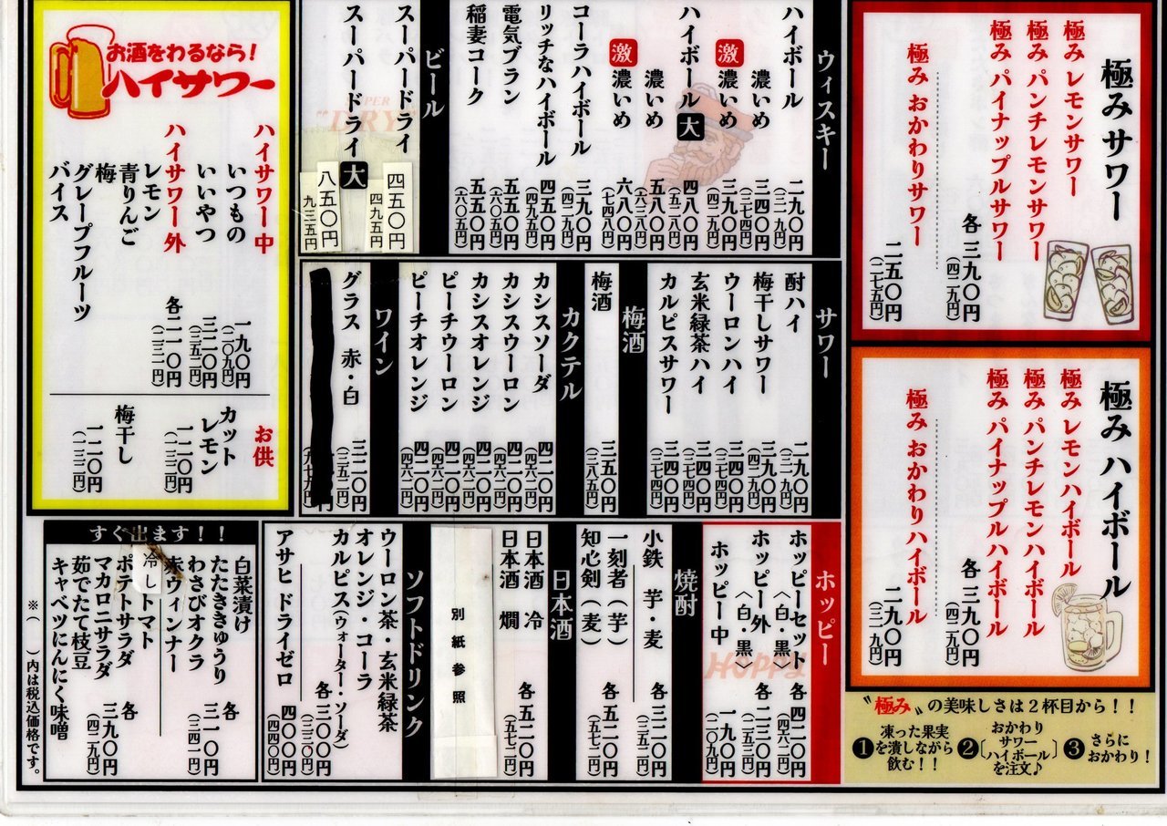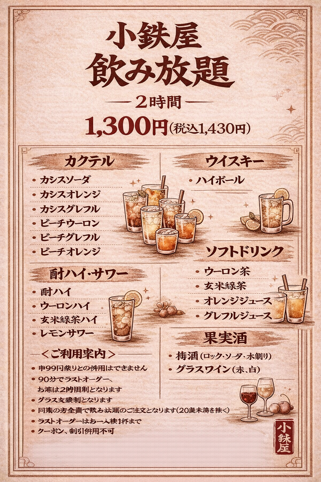 小鉄屋 成増店のドリンクメニューをご案内します。